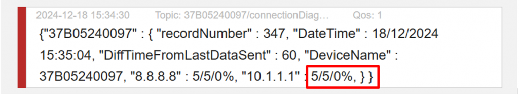 {“SerialNumber”: {recordNumber: 3, “DateTime”:18/12/2024 09:49:03, “DiffTimeFromLastDataSent”:60, “DeviceName”:37xxxxxx8, “target IP”:5/5/%,} }
