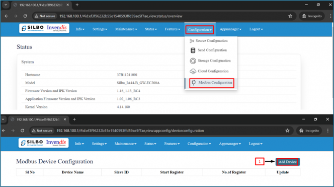 After login, go to configuration=> Modbus configuration,