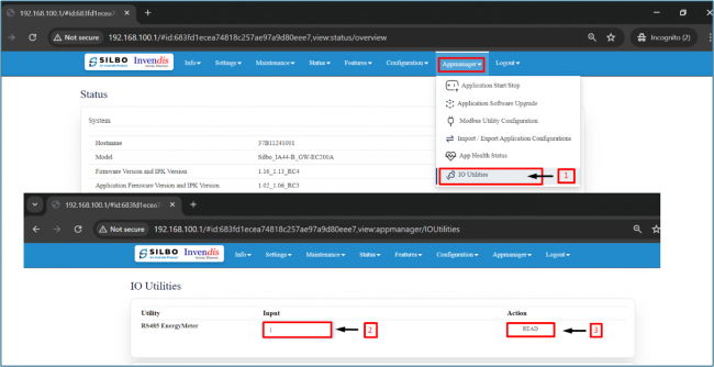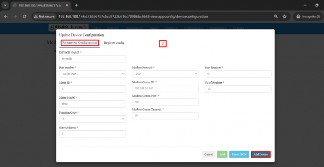 2. Enter Slave ID assigned (in this example slave id = 1)