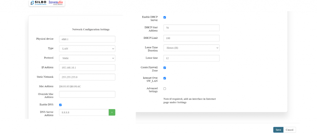 In this section it displays the hardware configured specification of the device.