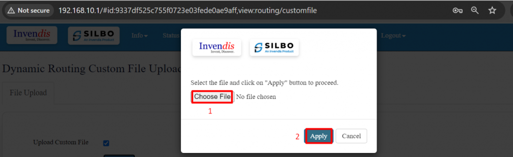 Dynamic Routing Custom File Upload allows you to select and upload a custom configuration file for dynamic routing settings (e.g., OSPF, BGP).