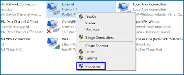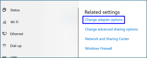 To change laptop IP to static IP address, go to laptop settings, in ethernet tab click on “change adapter options”.