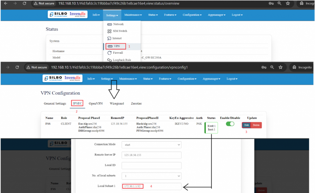 Step 4: Change loopback Ip & local subnet in IPSEC